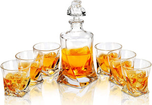Bar Visor - Crystal Whiskey Decanter 7 Piece Set Decanter and 6 Glasses