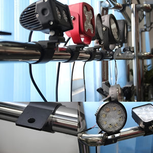 The aluminum tube clamp bracket provides a strong and versatile way to mount lights, whip bars, and accessories on vehicles and equipment. Built from aluminum alloy with a powder-coated finish, it resists rust, corrosion, and the harsh conditions of the outdoors. Anti-slip inner teeth and rubber inserts keep lights secure while reducing vibrations and protecting the tube surface. Easy to install with no drilling or welding, this clamp set is ideal for ATVs, UTVs, trucks, RVs, boats, and more.
