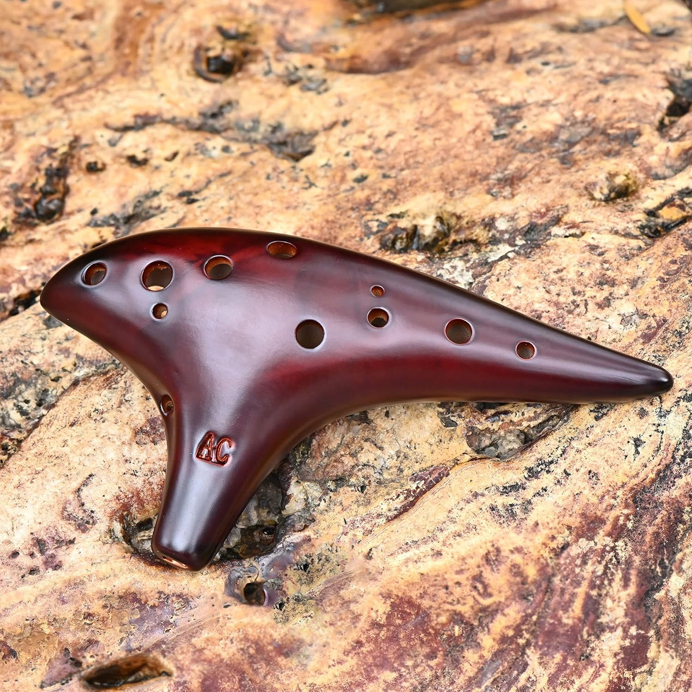 12-hole sweet potato ocarina made from dolomite pottery, graceful ocean-inspired design for music lovers.