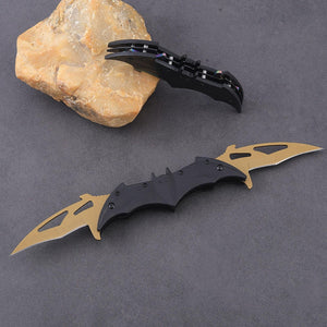 The bat pattern folding knife offers a stylish and functional design, ideal for collectors and enthusiasts. Made from stainless steel with a durable plastic handle, it features dual-side blades and a unique bat-inspired shape. Lightweight and foldable, the knife is easy to carry and display. The eagle-patterned handle adds a distinctive look, making it a great gift or display piece for knife lovers.Note:Handle with care. Not a toy—keep out of reach of children.