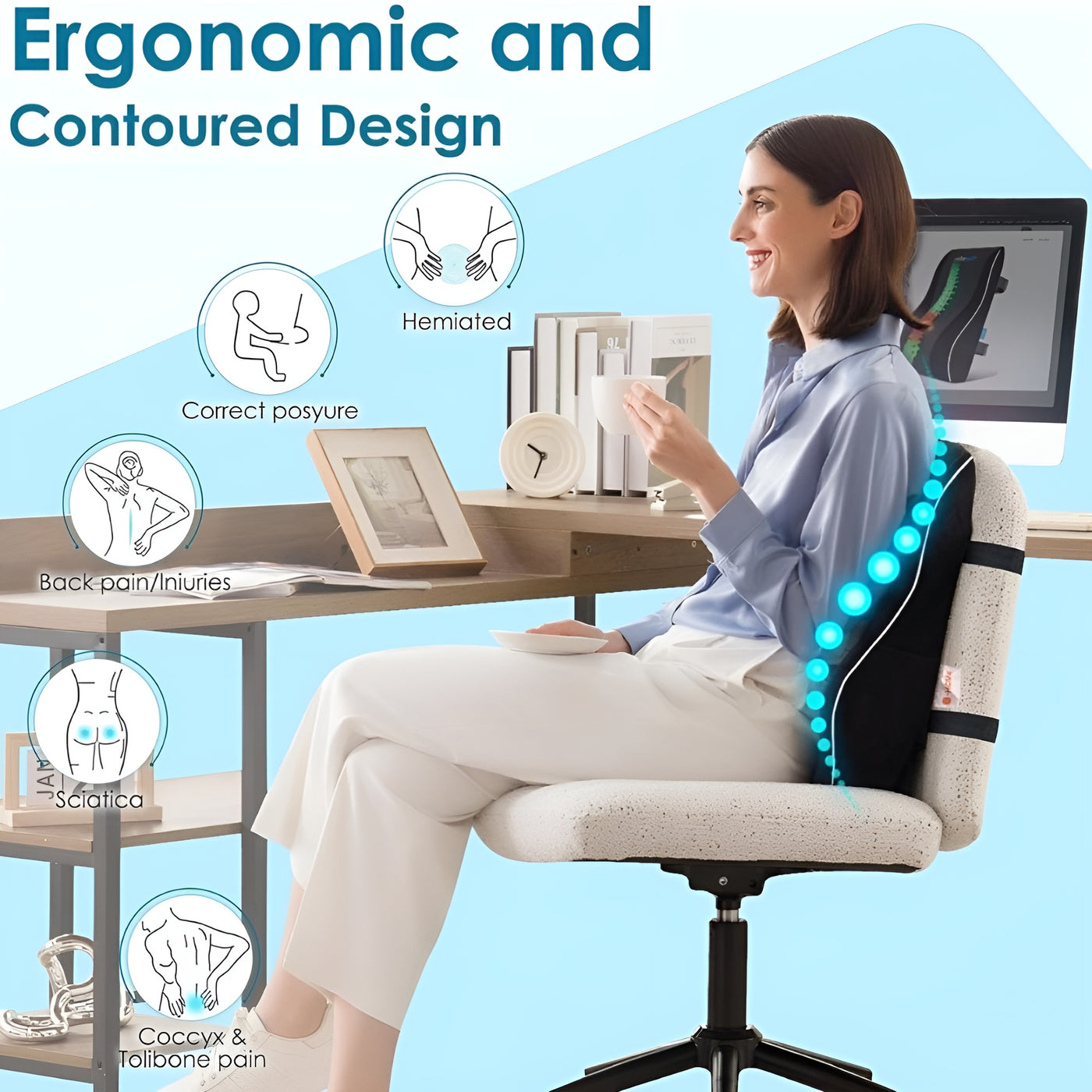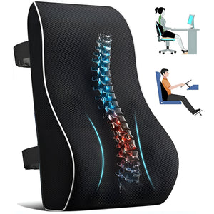 Herqona - Memory Foam Lumbar Support Cushion for Office Chair, Car & Gaming - Black