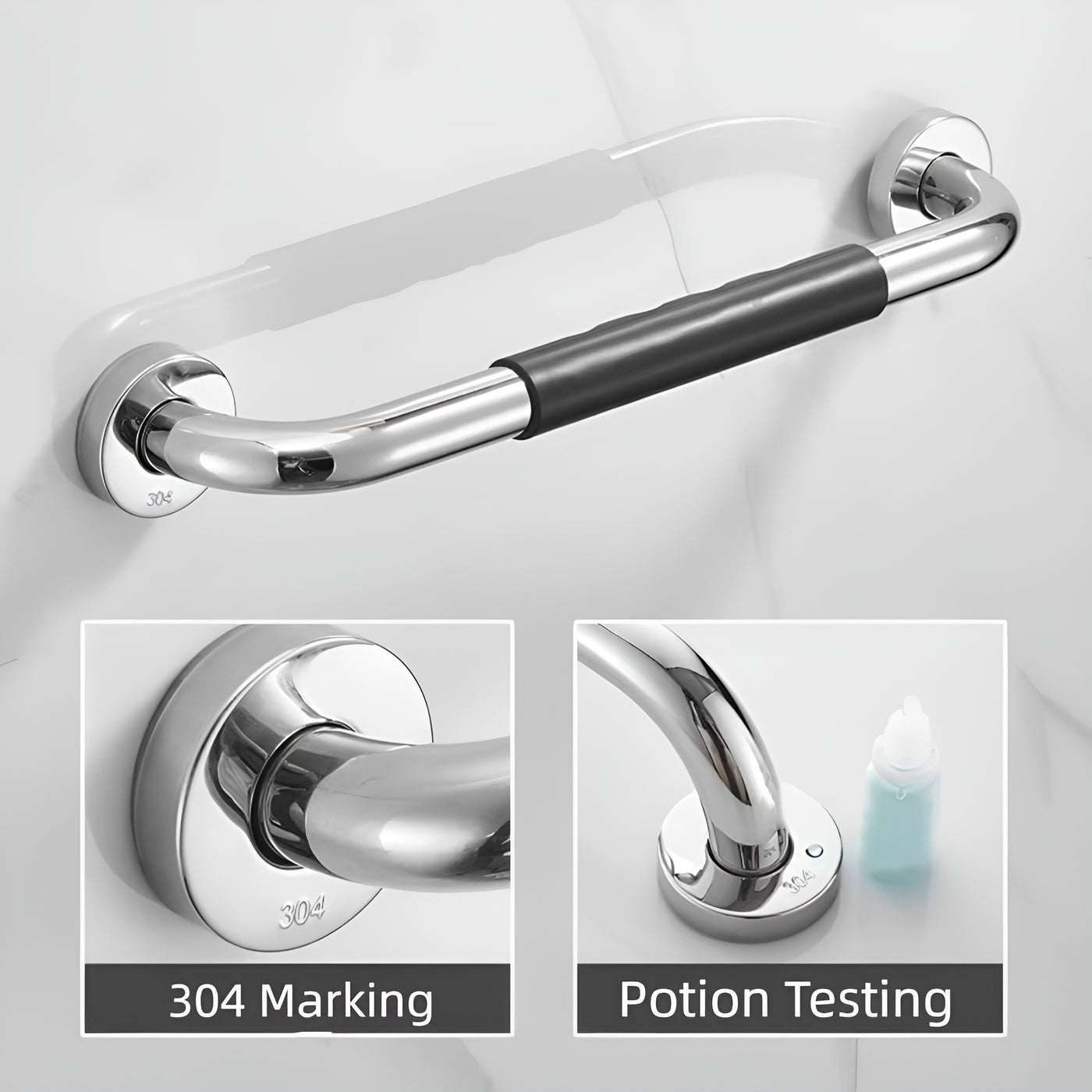 Features:-Non Slip Grip: Soft silicone handle provides a secure, comfortable hold even with wet hands.-Build: Made from stainless steel, resistant to rust and corrosion for long-term use.-Flexible Installation: Can be mounted horizontally or vertically to fit your space needs.-All Age Safety: Offers reliable support for seniors, kids, and those with limited mobility.-Easy Setup: Includes screws, anchors, and bolts for fast wall mounting and secure installation.