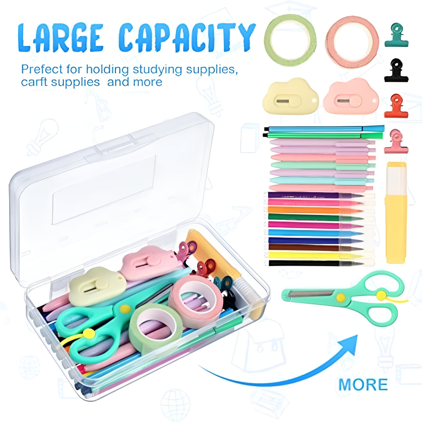 Features:-Compact with Ample Space: Each case measures 20×11.7×5.6cm, fitting school or office essentials.-Plastic Build: Made from sturdy clear plastic to resist cracking and breaking.-Secure & Transparent Design: Snap lid keeps contents safe, while clear body allows easy visibility.-Versatile Storage Use: Perfect for stationery, craft supplies, makeup, small tools, and travel items.-Value Pack of 12: Bulk set provides multiple organizers, ideal for classrooms or group use.