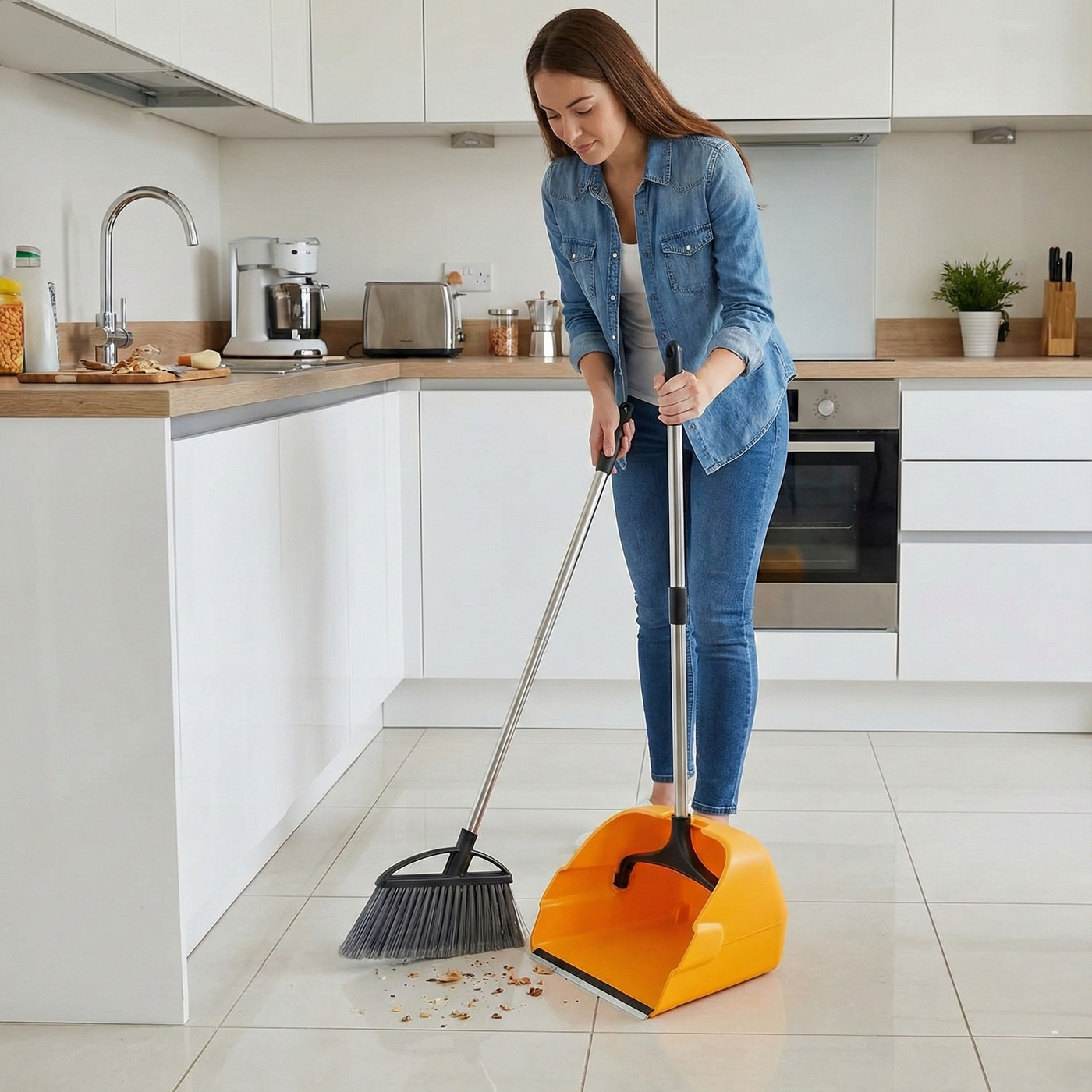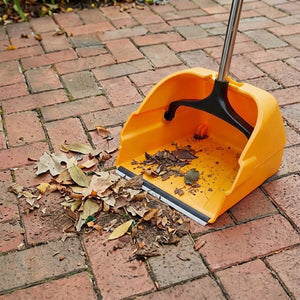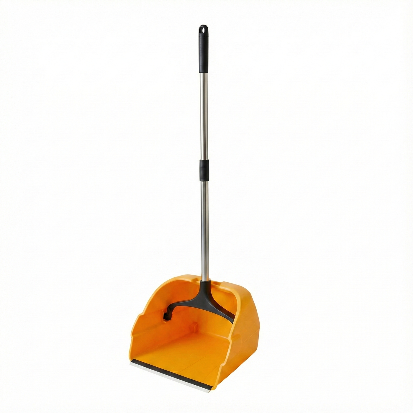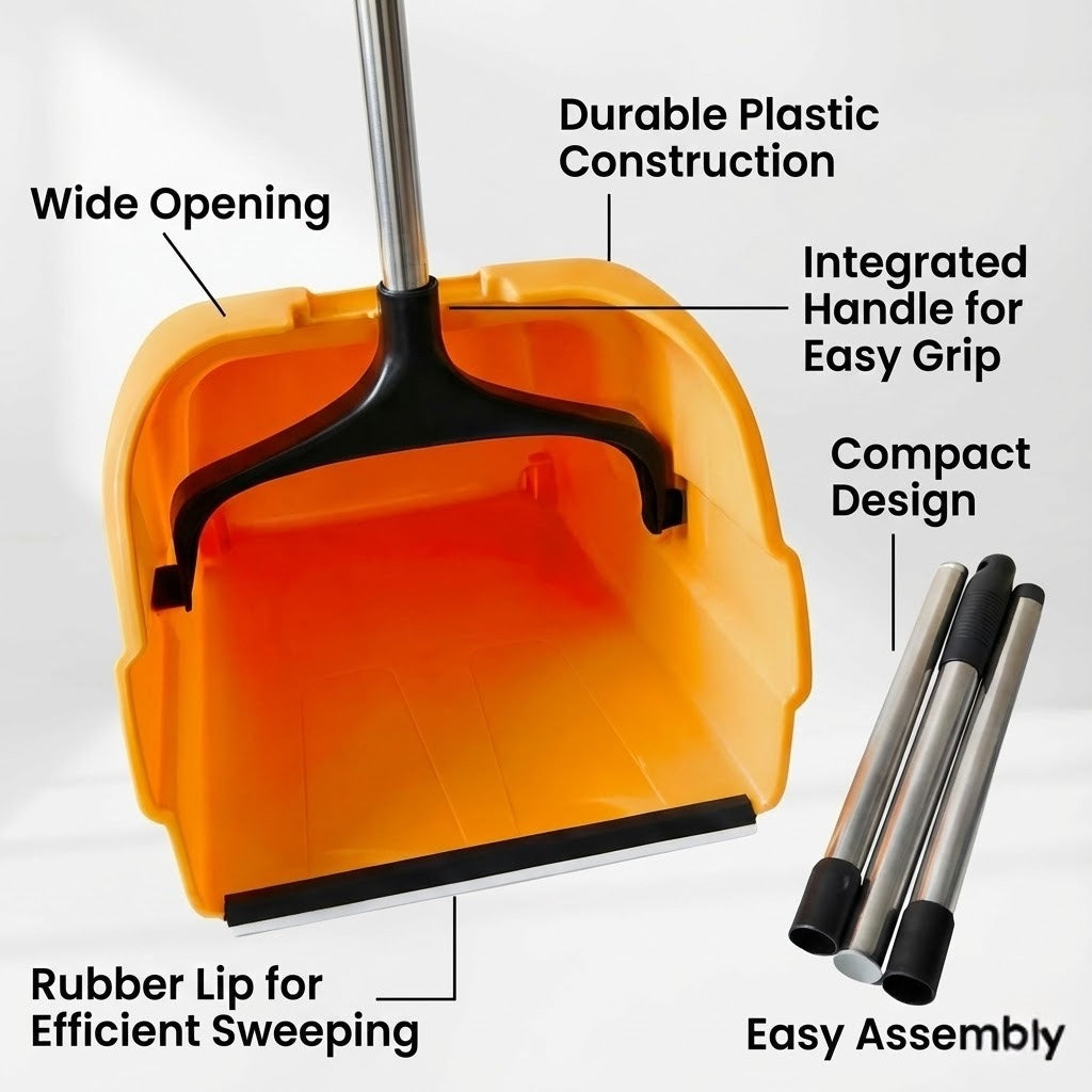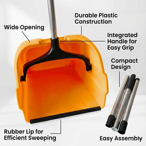 Features:-Back Friendly Handle: Angled stainless steel pole helps reduce back strain during sweeping.-Secure Snap Lock: Tray locks into place for better control while sweeping and emptying.-90° Swivel Pan: Swivels upright to prevent debris from spilling during transport.-Large Capacity Tray: 34×32.3×24cm tray holds more waste for faster and easier cleanups.-Build: Plastic tray and stainless steel pole provide long-lasting performance.