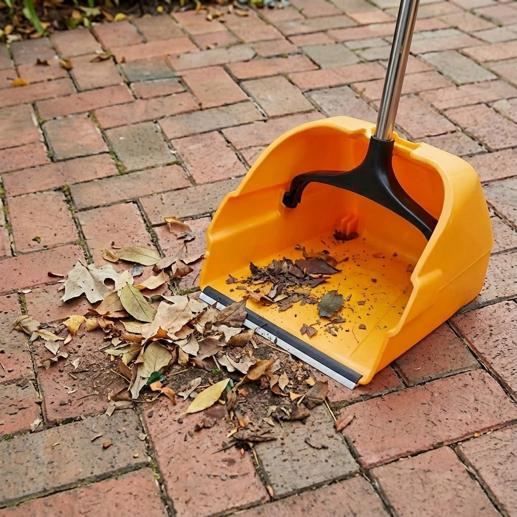Large dust pan with 34×32.3×24cm tray and 95cm pole for quick cleanups at home, garden, or jobsite.