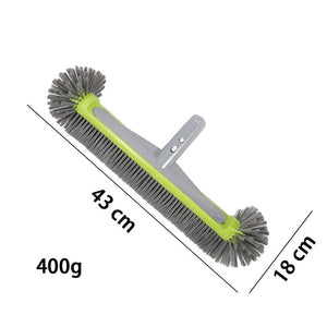 Aluminum and nylon pool brush with 43×18cm size and 45° handle for walls, floors, and corners.