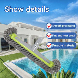 The pool cleaning brush uses a plastic body and high-density nylon bristles to scrub pool walls, floors, and corners with confidence. The 45° handle supports smooth pushing, and the curved edges reach tight spots with less effort. An EZ clip connects quickly to a standard pole without hand pinching. The brush can also support light cleaning on home tiles and bathroom floors for extra convenience.