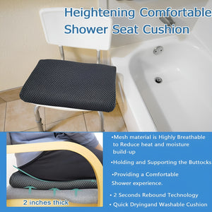 Soft POE shower chair cushion with 4D mesh top, quick-dry build, and non-slip silicone base.