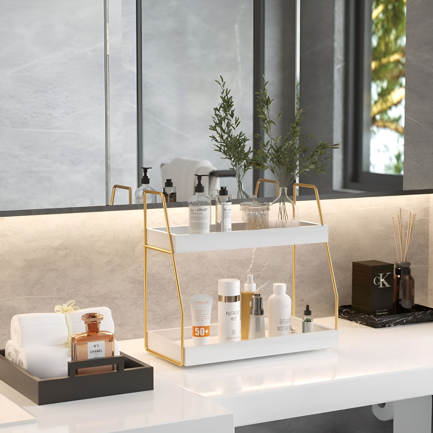 What's in the Box:1 × 2-Tier Bathroom Countertop Organizer