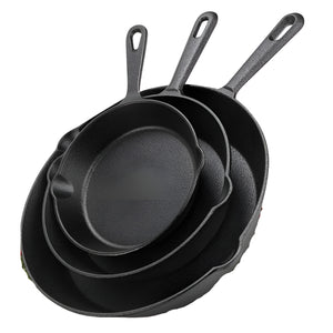 What's in the Box:3 x Cast Iron Skillet Pan Set