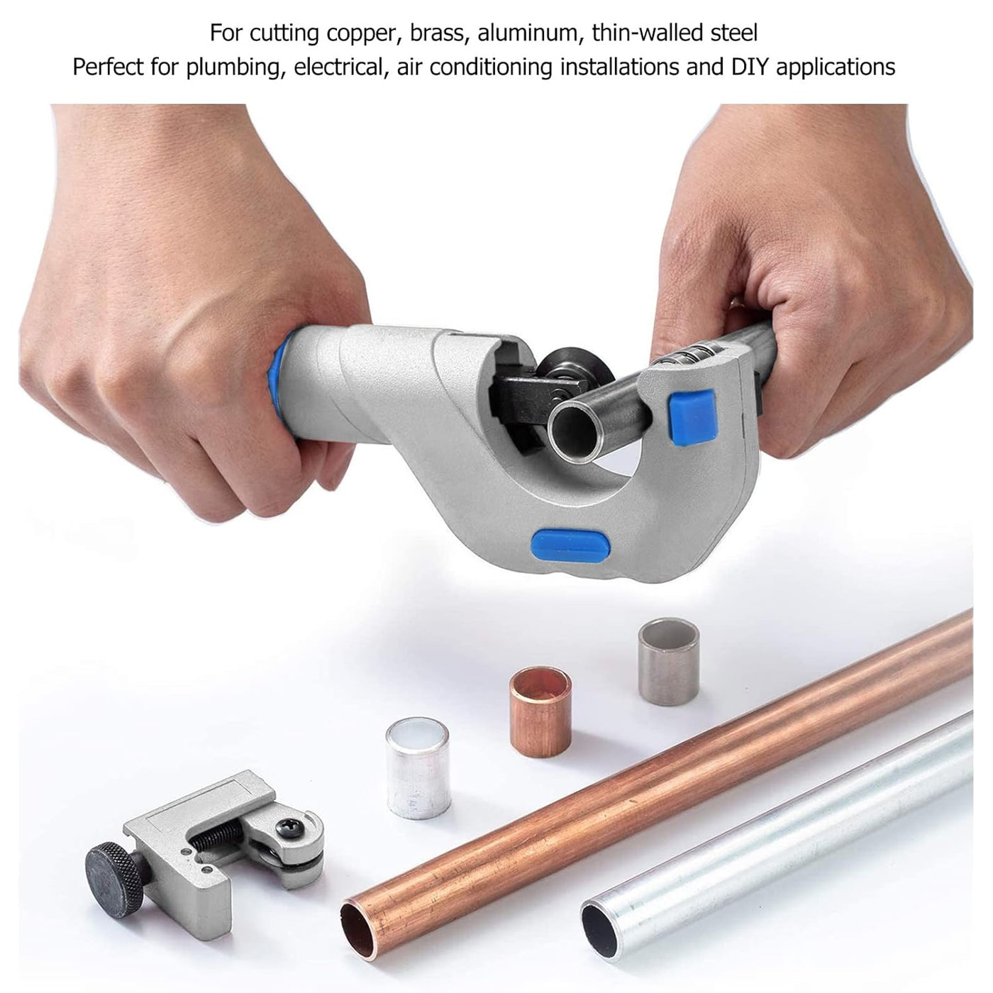 The mini pipe cutter is designed for precision cutting of small-diameter metal pipes in tight spaces. Made from durable aluminum alloy with a sharp manganese steel blade, it delivers smooth and clean cuts on copper, brass, aluminum, and thin-wall steel pipes. Compact and lightweight, this tool is ideal for plumbing, electrical, HVAC, and DIY applications, providing reliable performance for both professional and home use.