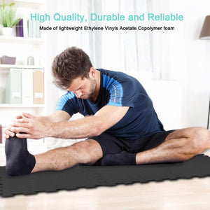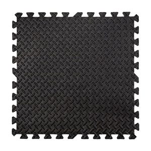 Features:-Protective Flooring: Thick EVA foam tiles help reduce floor marks and provide comfortable padding for workouts and kids’ spaces.-Anti Slip Texture: Surface pattern improves traction, helping reduce slipping during home workouts, stretching, or playtime.-Impact Softening: Dense foam absorbs movement and reduces pressure, suitable for fitness routines and long periods of standing.-Water Resistant & Low Maintenance: Surface wipes clean easily and resists spills, ideal for home gyms or busy households.-Fast Assembly: Interlocking edges connect smoothly, and tiles can be cut to size or stored compactly when not in use.