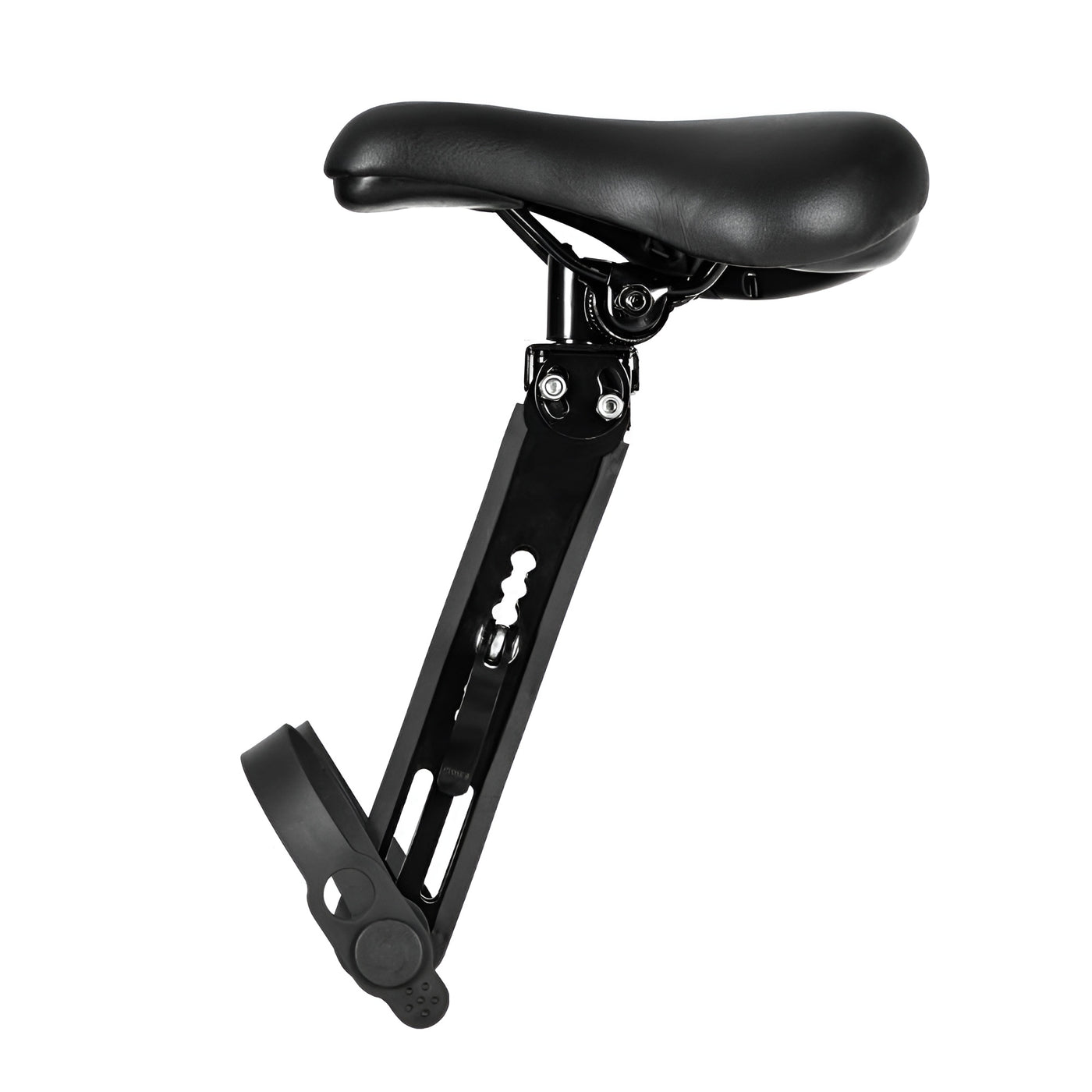Comfortable front-mounted bike seat with secure buckle, soft cushion, and adjustable angle design.