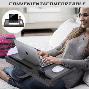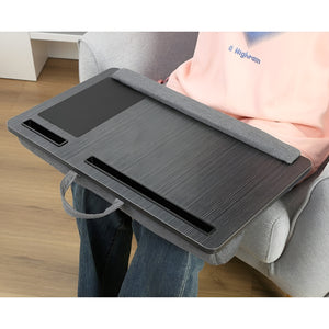 Lap desk with cushioned base, device slot, and smooth mouse pad for use at home, in the office, or on the go