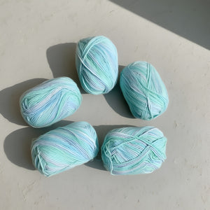 Specifications:-Color: Forest Blend , Pastel Sky-Material: 60% Cotton, 40% Acrylic-Weight: 250 g-Length Per Skein: 100 mWhat’s in the Box:5 × Milk Cotton Yarn Balls