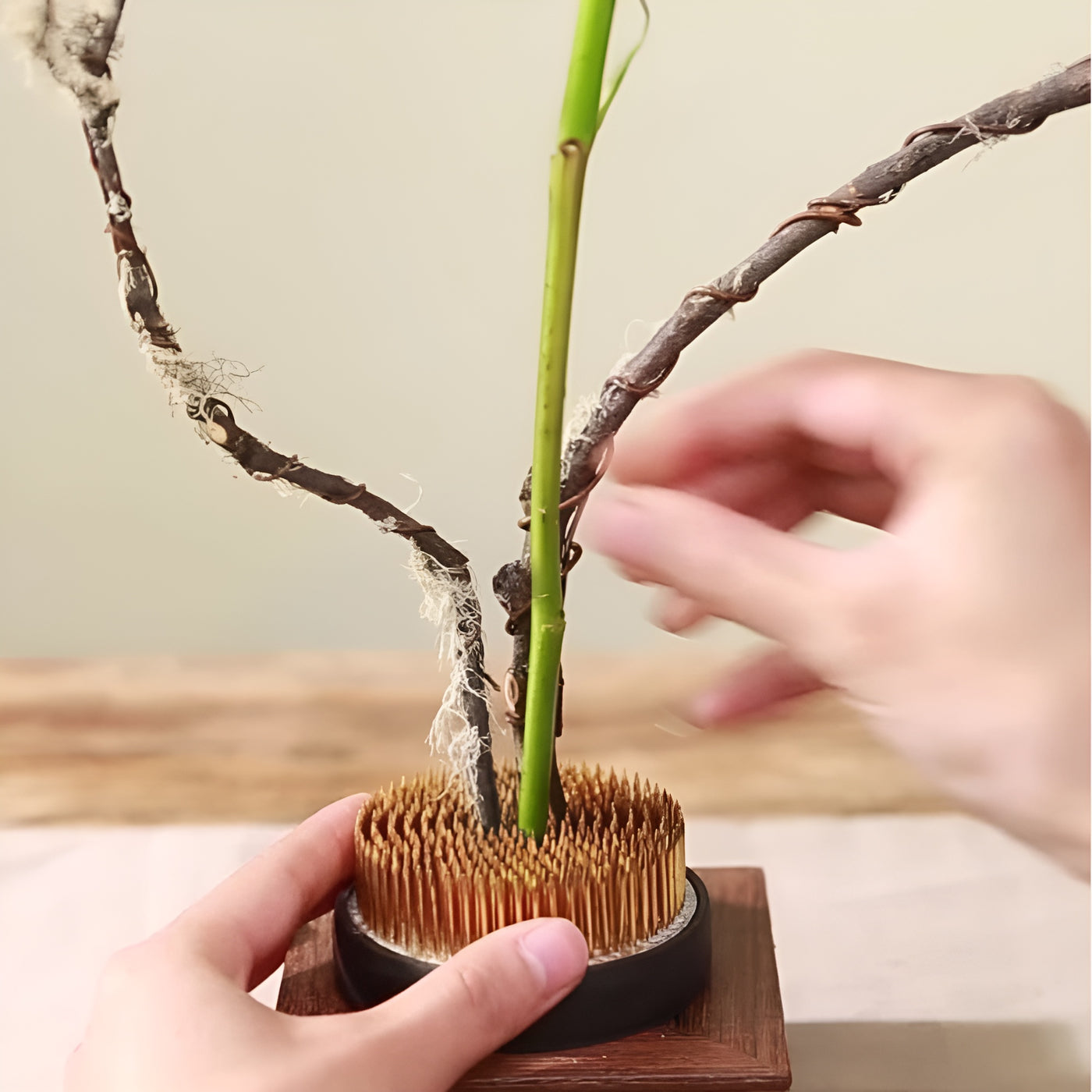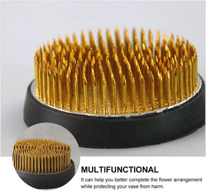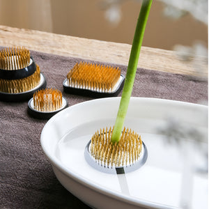 The copper flower frog kenzan is designed for precise and stable floral arrangements. Built with a heavy copper base and dense steel pins, it holds stems firmly upright for balanced and elegant displays. The 550g weight and low center of gravity prevent tipping, while the rubber base protects vases from scratches and keeps the kenzan steady. Ideal for Ikebana, floral art, home décor, and teaching, this kenzan offers lasting durability and reliability for both beginners and professionals.