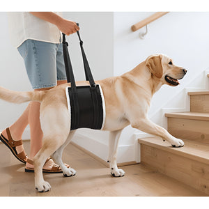 Features:-Support for Mobility: Helps dogs stand, walk, climb stairs, and move safely during potty breaks or daily routines.-Comfortable Padding: Soft fleece lining cushions your dog’s belly and reduces pressure during lifting.-Build: Oxford cloth and strong lifting straps offer reliable support for different dog sizes.-Reflective Safety: Reflective strips enhance visibility during evening walks or low-light conditions.-Easy to Use & Carry: Lightweight, foldable, washable, and simple to put on and remove when needed.