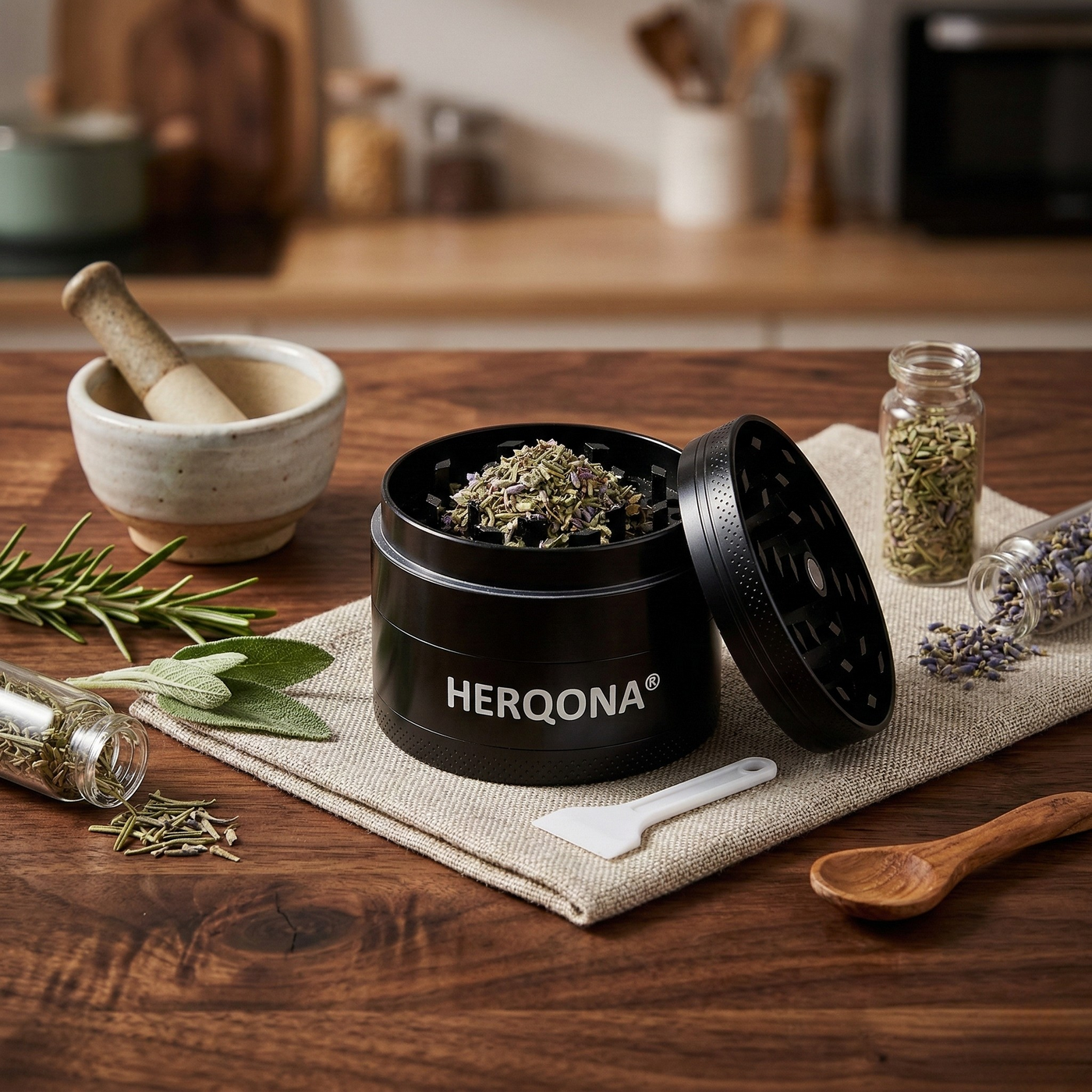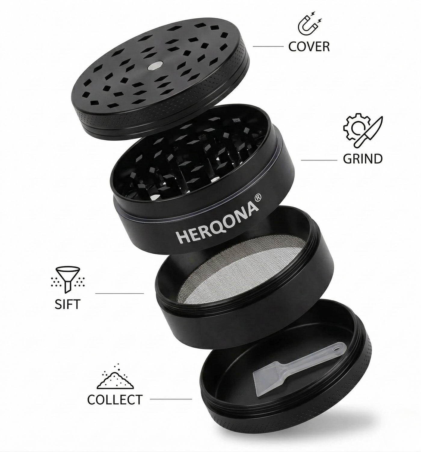 Herqona's grinder is made of durable and high quality Zinc material that makes it a perfect must-have accessory. Great for herbs, tobacco and spices, this grinder is versatile and simply easy to use.